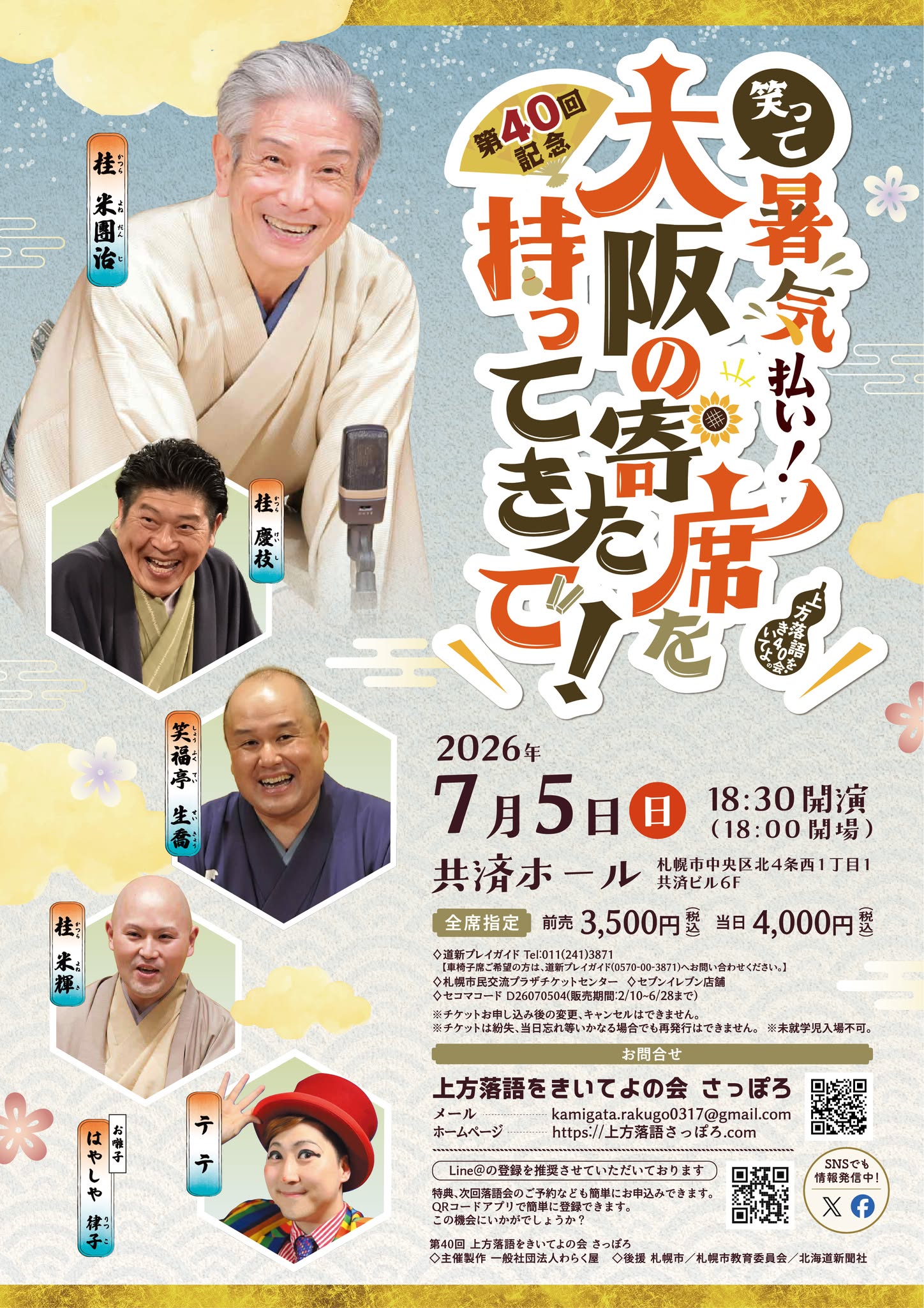 40回記念の今回は札幌でも人気の桂米團治師匠をトリでお迎えします。