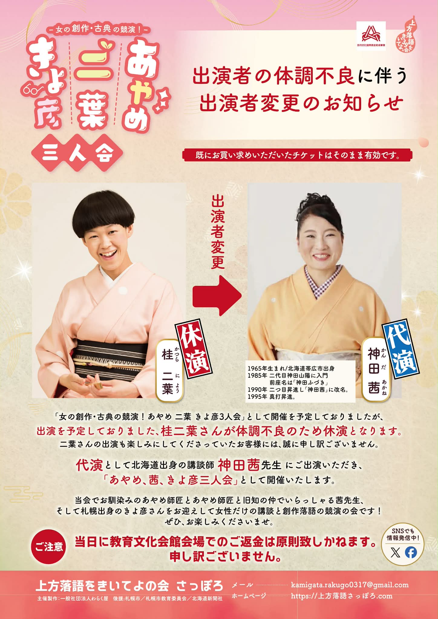 あやめ、茜、きよ彦三人会 ~第39回上方落語をきいてよの会 さっぽろ