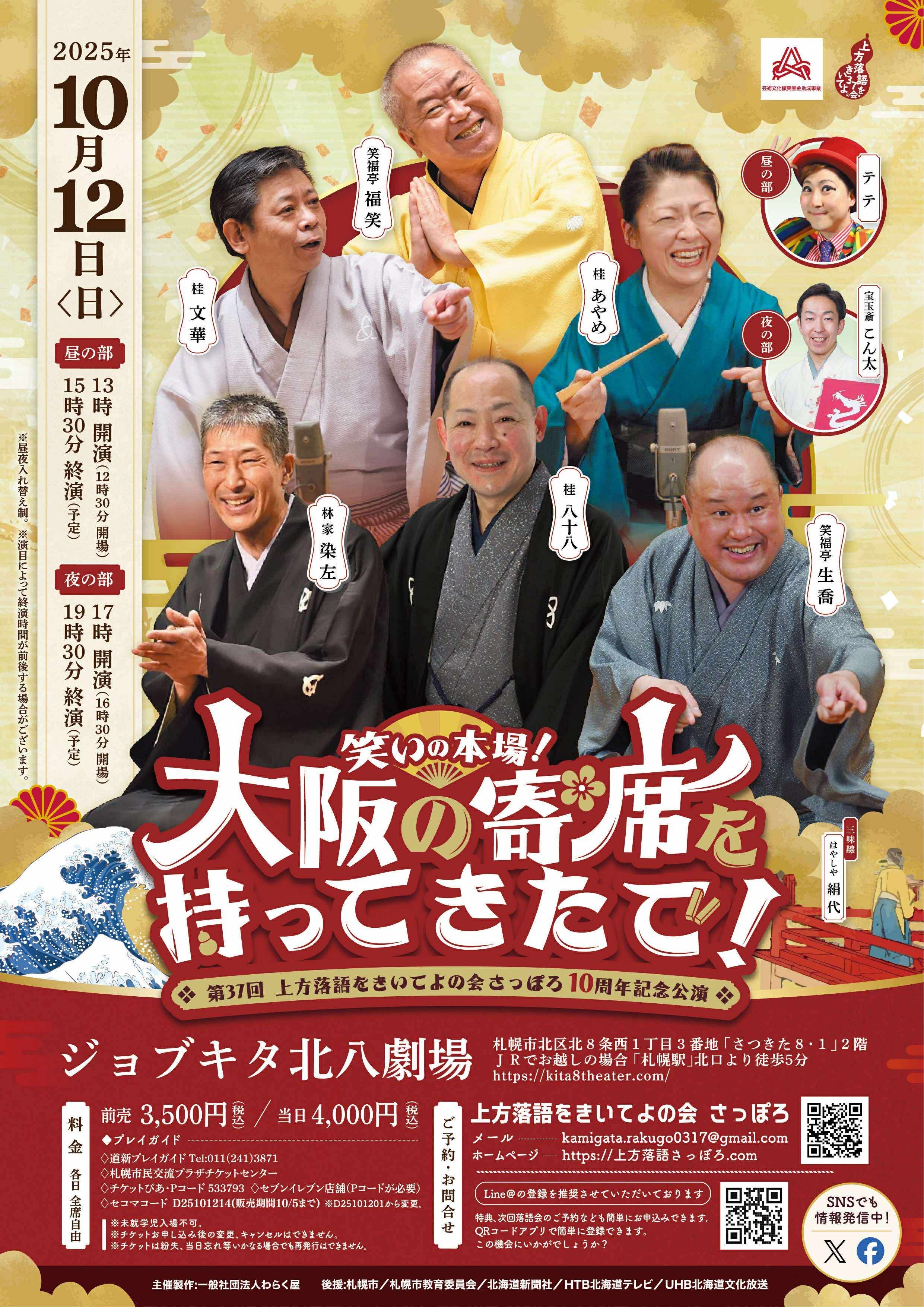 「笑いの本場!大阪の寄席を持ってきたで!」10周年記念公演 第37回上方落語をきいてよの会 さっぽろ